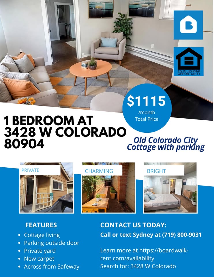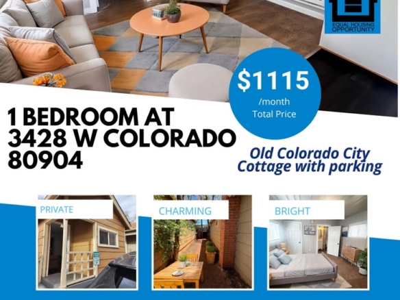 Old Colorado City cottage at 3428 W Colorado Ave! Call or text our leasing manager, Sydney, at (719) 800-9031 with any questions or to schedule a tour!
