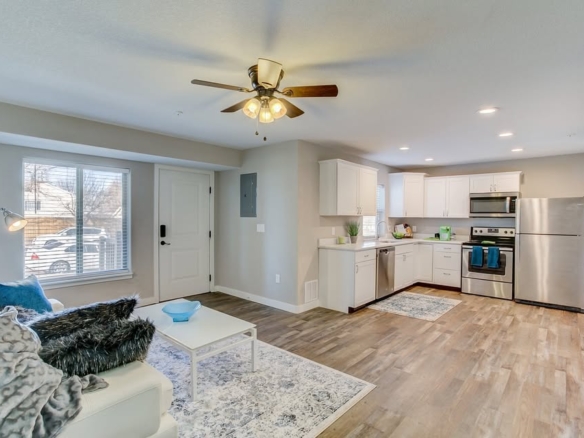 Quartz counters, stainless appliances, luxurious gray LVT flooring, 9 foot ceilings, and private balconies are just a few of the amenities that come standard with each unit. The community boasts beautiful westerly views of Pikes Peak and the front range!