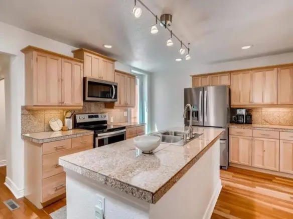 The interior features a large living room that connects to the updated kitchen with hardwood floors throughout. The 3 bedrooms have newer carpet and the bathrooms have been recently remodeled. The kitchen has received new white quartz countertops and backsplash since the listing photos have been taken. The large master suite features a walk-in closet, double vanity and rain shower. The house boasts an impressive backyard with professional landscaping, up-lighting on trees, built in bar/grill, and propane fire pit with outdoor furniture. Park in the tandem 2-car driveway or the 2-car garage (which includes a 220v outlet for electric car charging), and walk just one block to the shops & restaurants at Cobbler’s Corner, Sunnyside’s revived commercial hub.
