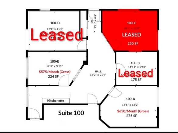 š¢ Available Offices: ⢠175ā275 SF ā Starting at $575/month – $650/month (Gross)